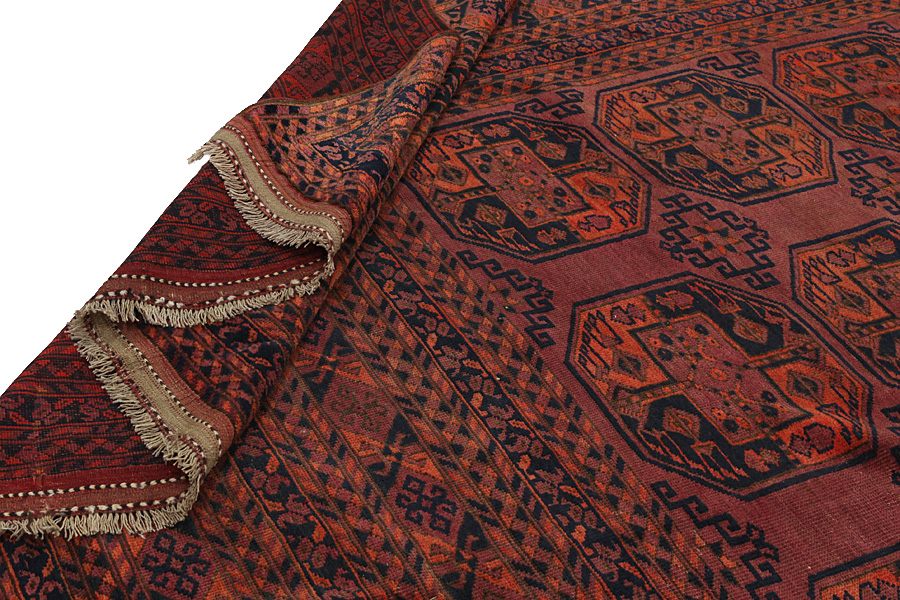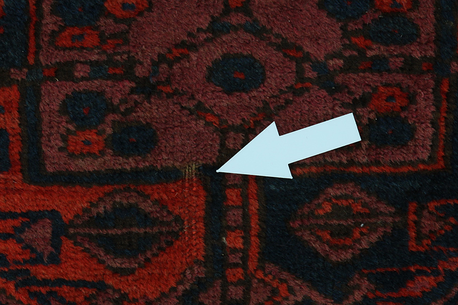 Abrash: Auf Grund des unterschiedlichen Wollfettgehalts und der unterschiedlichen Salzmenge während des Färbungsprozesses, hat die Wolle eine unterschiedliche Farbaufsaugfähigkeit. Vor dem Weben ist es nicht so sichtbar. Aber beim Weben entstehen Reihen mit unterschiedlichen Farbabstufungen der gleichen Farbe. Dies heißt Abrash und verdeutlicht die Natürlichkeit und die Originalität der Wolle, die mit keinen chemischen Mitteln behandelt wurde. Beispiele