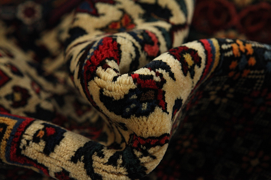 Die Teppichfarben ändern sich je nachdem von welcher Seite er betrachtet wird. Sie können den Teppich auf den folgenden Bildern aus verschiedenen Perspektiven betrachten: