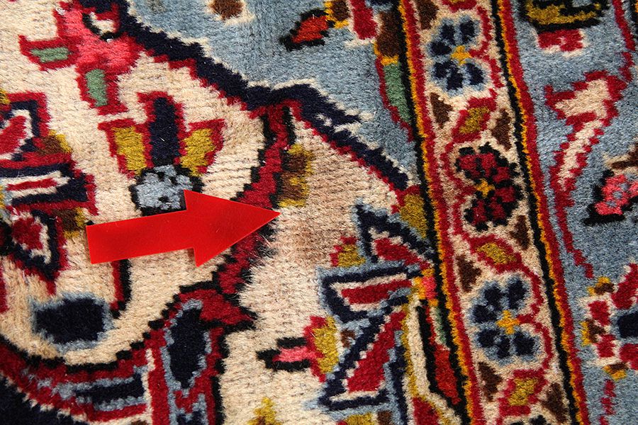 • Wichtige Bemerkung: Die Farbe des Teppichs ist an einer kleinen Stelle des Flors verbleicht.