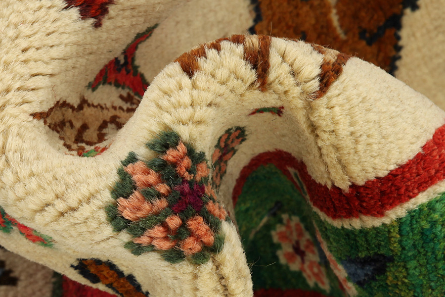 Die Teppichfarben ändern sich je nachdem von welcher Seite er betrachtet wird. Sie können den Teppich auf den folgenden Bildern aus verschiedenen Perspektiven betrachten: