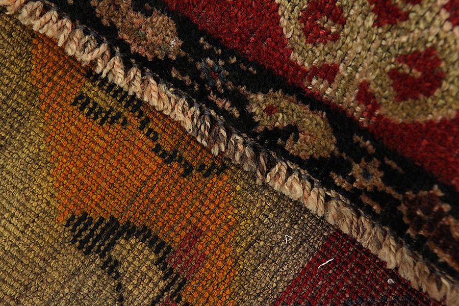 Abrash: Auf Grund des unterschiedlichen Wollfettgehalts und der unterschiedlichen Salzmenge während des Färbungsprozesses, hat die Wolle eine unterschiedliche Farbaufsaugfähigkeit. Vor dem Weben ist es nicht so sichtbar. Aber beim Weben entstehen Reihen mit unterschiedlichen Farbabstufungen der gleichen Farbe. Dies heißt Abrash und verdeutlicht die Natürlichkeit und die Originalität der Wolle, die mit keinen chemischen Mitteln behandelt wurde. Beispiele