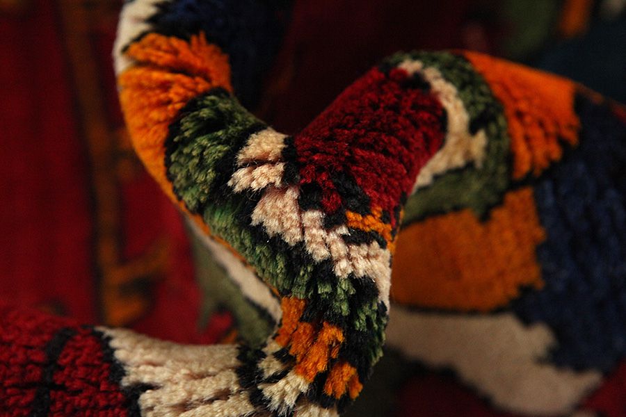 Die Teppichfarben ändern sich je nachdem von welcher Seite er betrachtet wird. Sie können den Teppich auf den folgenden Bildern aus verschiedenen Perspektiven betrachten: