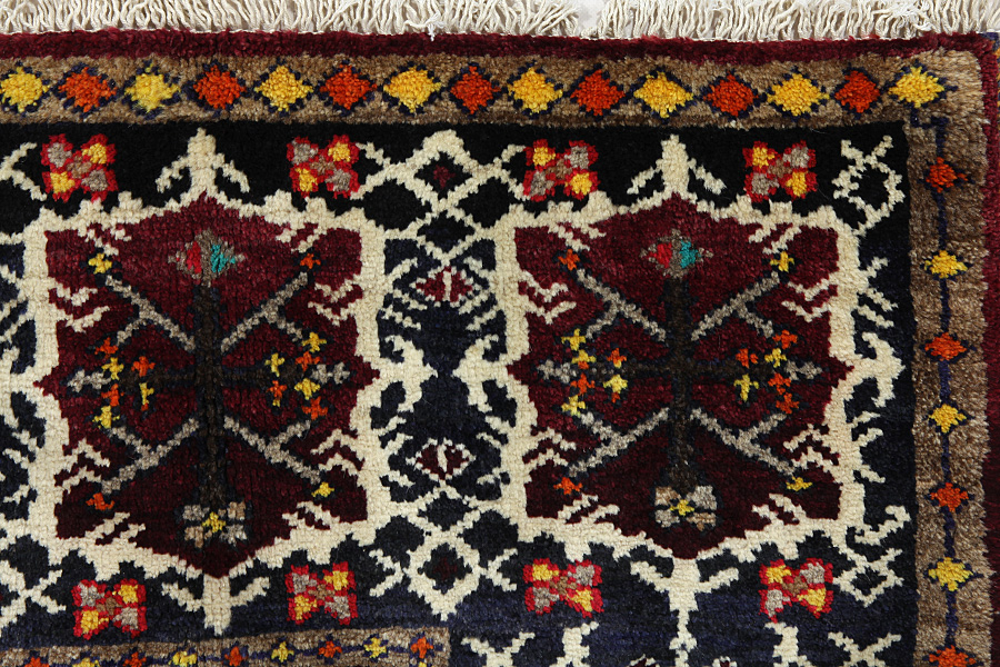 Gabbeh bedeutet auf Persisch natürlich, primitiv. Teppiche und Webwaren mit diesem Namen werden von dem Nomadenstamm Qashqai im südwestlichen Iran gefertigt. Die Fäden werden per Hand bearbeitet und gedreht. Sie werden mit pflanzlichen Farben gefärbt und in eine Kette aus Wolle eingeknüpft. Der Flor kann bis zu 2 cm dick sein. Diese Teppiche sind simpel, haben nicht viele Muster und sind normalerweise einfarbig. Die schlichten, linearen Muster mit Tieren und menschlichen Gestalten verleihen ihnen ein zeitgenössisches Aussehen. Die Gabbeh Teppiche sind unter verschiedenen Namen bekannt, wie Basic, Amalehbaft, Kashkooli, Luribaft und Sumak. Gabbeh Kashkooli- Teppiche haben eine höhere Knotendichte und sind dünner als die gewöhnlichen Gabbeh-Teppiche. Die persischen Gabbeh-Teppiche sind im Gegensatz zu den indischen viel widerstandsfähiger und ihre Qualität ist überaus gut.