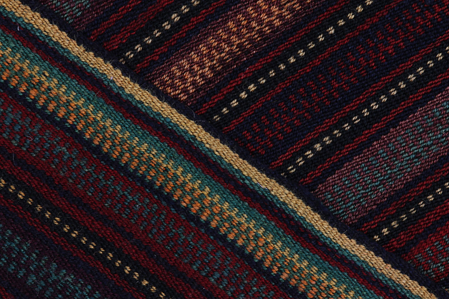 Abrash: Auf Grund des unterschiedlichen Wollfettgehalts und der unterschiedlichen Salzmenge während des Färbungsprozesses, hat die Wolle eine unterschiedliche Farbaufsaugfähigkeit. Vor dem Weben ist es nicht so sichtbar. Aber beim Weben entstehen Reihen mit unterschiedlichen Farbabstufungen der gleichen Farbe. Dies heißt Abrash und verdeutlicht die Natürlichkeit und die Originalität der Wolle, die mit keinen chemischen Mitteln behandelt wurde. Beispiele