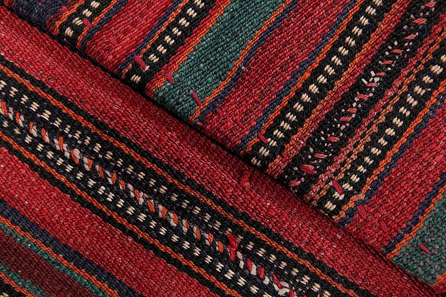 Gewebter Teil an einer oder auf beiden Teppichseiten: Die Nomaden weben an manchen Teppichen an der einen oder auch an beiden Breitseiten Fransen auf einen schmalen gewebten Teil des Teppichs, oder sie flechten die Fransen kunstvoll zu kleinen Zöpfen. Dies ist eine Technik von verschiedenen Webern, um eine größere Widerstandsfähigkeit oder einfach um ihre Kunstfertigkeit zu zeigen. Beispiele