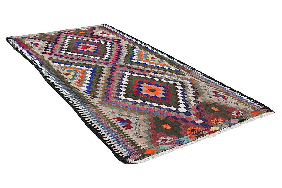 Dies ist ein spezieller orientalischer Webteppich ohne Flor, der dem Teppich mit Flor vorrausging. Sie werden vor allem von Nomaden in Persien, Afghanistan, der Türkei und verschiedenen Gebieten im Kaukasus hergestellt. Es handelt sich hier um Webarbeiten von nicht besonders großen Maßen, mit simpler Webart, ohne Flor, die typische geometrische Muster und üppige Farbkombinationen haben. Für die Fertigung der Teppiche werden natürliche Materialien verwendet, wie Wolle und manchmal wird für leichtere und dünnere Kelims auch Seide benutzt. Die Farben der Fäden werden aus Pflanzen und Metallen gewonnen, die zu den natürlichen, hübschen Farbtönen beitragen. Die langjährige Tradition der Kelims gibt es schon seit Jahrhunderten bei den Nomaden Zentralasiens. Sie sind vielseitig verwendbar und können als Teppiche auf dem Boden, als Möbelbedeckung oder als Wanddekoration verwendet werden. Der Name Kelim stammt von dem persischen Wort Gelim. Die Kurden nennen sie Berr-Teppiche. Die bekanntesten persischen Kelims sind die Sumakh-. Senneh-, Fars- und die Qashqai-Teppiche. Verschiedene Namen afghanischer Kelims sind Golbariasta, Maimane, Taimani, Maliki und andere. Viele Kelims werden auch an der Grenze zwischen Persien und Afghanistan von Balouch-Nomaden gewebt. Ihre typischen Farben sind dunkle Erdtöne.