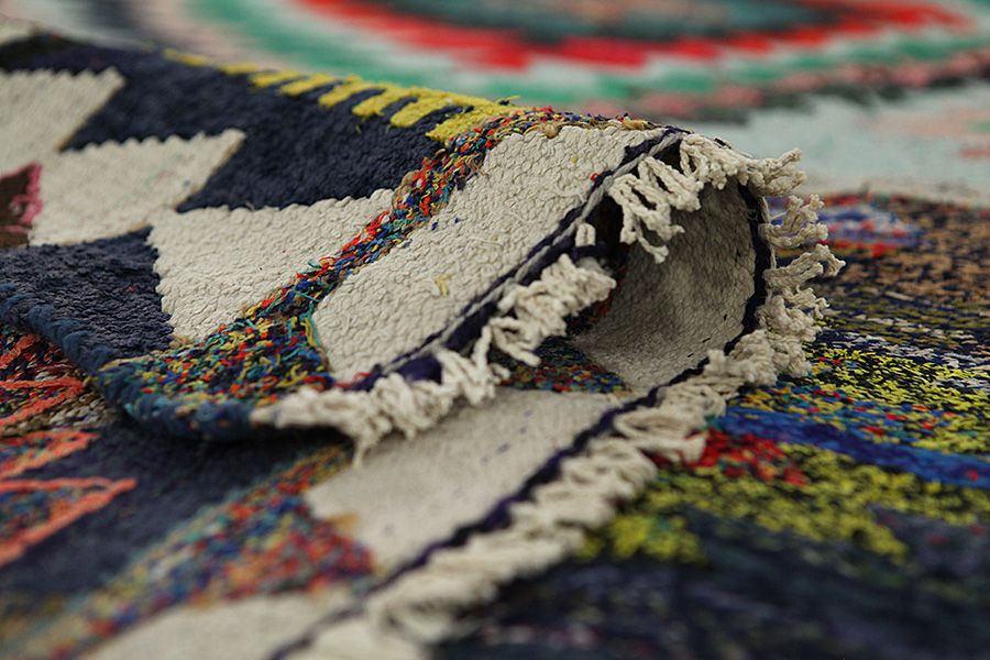 Die Teppichfarben ändern sich je nachdem von welcher Seite er betrachtet wird. Sie können den Teppich auf den folgenden Bildern aus verschiedenen Perspektiven betrachten: