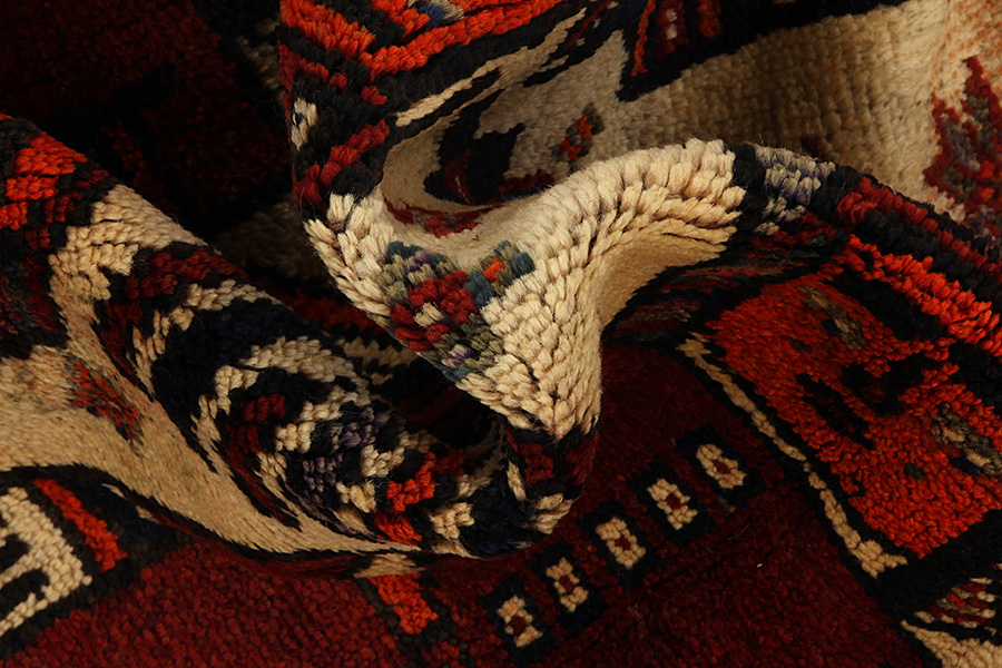 Abrash: Auf Grund des unterschiedlichen Wollfettgehalts und der unterschiedlichen Salzmenge während des Färbungsprozesses, hat die Wolle eine unterschiedliche Farbaufsaugfähigkeit. Vor dem Weben ist es nicht so sichtbar. Aber beim Weben entstehen Reihen mit unterschiedlichen Farbabstufungen der gleichen Farbe. Dies heißt Abrash und verdeutlicht die Natürlichkeit und die Originalität der Wolle, die mit keinen chemischen Mitteln behandelt wurde. Beispiele