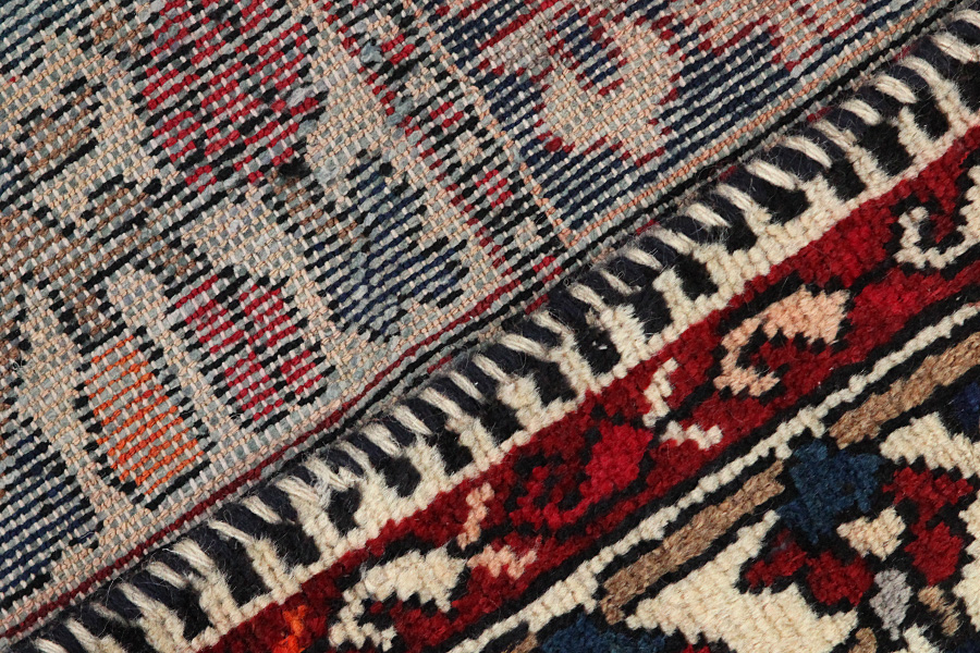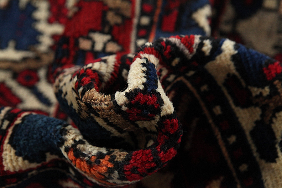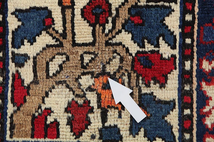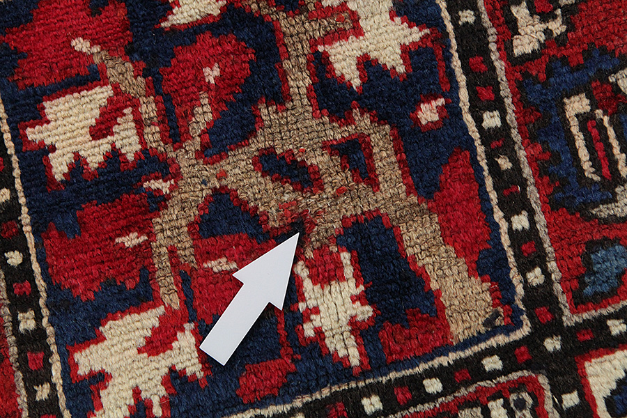 Abrash: Auf Grund des unterschiedlichen Wollfettgehalts und der unterschiedlichen Salzmenge während des Färbungsprozesses, hat die Wolle eine unterschiedliche Farbaufsaugfähigkeit. Vor dem Weben ist es nicht so sichtbar. Aber beim Weben entstehen Reihen mit unterschiedlichen Farbabstufungen der gleichen Farbe. Dies heißt Abrash und verdeutlicht die Natürlichkeit und die Originalität der Wolle, die mit keinen chemischen Mitteln behandelt wurde. Beispiele