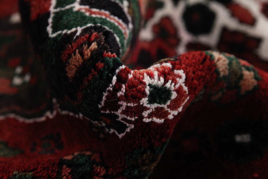 Abrash: Auf Grund des unterschiedlichen Wollfettgehalts und der unterschiedlichen Salzmenge während des Färbungsprozesses, hat die Wolle eine unterschiedliche Farbaufsaugfähigkeit. Vor dem Weben ist es nicht so sichtbar. Aber beim Weben entstehen Reihen mit unterschiedlichen Farbabstufungen der gleichen Farbe. Dies heißt Abrash und verdeutlicht die Natürlichkeit und die Originalität der Wolle, die mit keinen chemischen Mitteln behandelt wurde. Beispiele