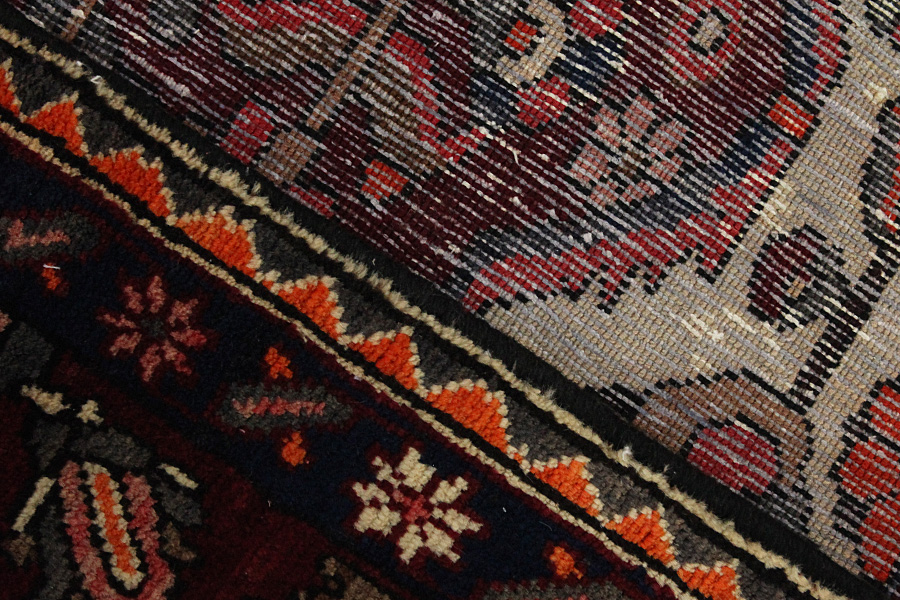 Abrash: Auf Grund des unterschiedlichen Wollfettgehalts und der unterschiedlichen Salzmenge während des Färbungsprozesses, hat die Wolle eine unterschiedliche Farbaufsaugfähigkeit. Vor dem Weben ist es nicht so sichtbar. Aber beim Weben entstehen Reihen mit unterschiedlichen Farbabstufungen der gleichen Farbe. Dies heißt Abrash und verdeutlicht die Natürlichkeit und die Originalität der Wolle, die mit keinen chemischen Mitteln behandelt wurde. Beispiele