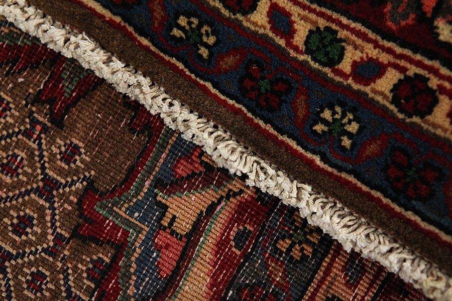 Abrash: Auf Grund des unterschiedlichen Wollfettgehalts und der unterschiedlichen Salzmenge während des Färbungsprozesses, hat die Wolle eine unterschiedliche Farbaufsaugfähigkeit. Vor dem Weben ist es nicht so sichtbar. Aber beim Weben entstehen Reihen mit unterschiedlichen Farbabstufungen der gleichen Farbe. Dies heißt Abrash und verdeutlicht die Natürlichkeit und die Originalität der Wolle, die mit keinen chemischen Mitteln behandelt wurde. Beispiele