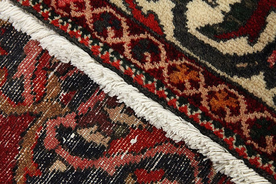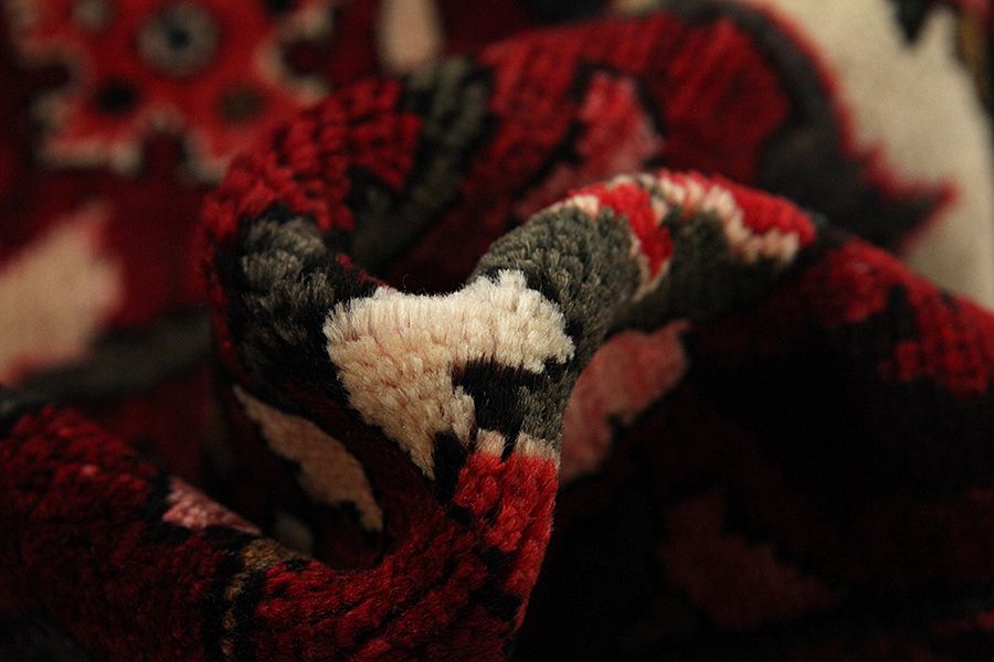 Abrash: Auf Grund des unterschiedlichen Wollfettgehalts und der unterschiedlichen Salzmenge während des Färbungsprozesses, hat die Wolle eine unterschiedliche Farbaufsaugfähigkeit. Vor dem Weben ist es nicht so sichtbar. Aber beim Weben entstehen Reihen mit unterschiedlichen Farbabstufungen der gleichen Farbe. Dies heißt Abrash und verdeutlicht die Natürlichkeit und die Originalität der Wolle, die mit keinen chemischen Mitteln behandelt wurde. Beispiele