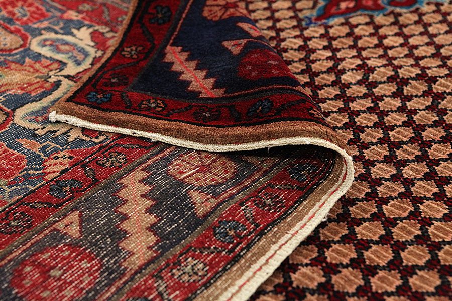 Abrash: Auf Grund des unterschiedlichen Wollfettgehalts und der unterschiedlichen Salzmenge während des Färbungsprozesses, hat die Wolle eine unterschiedliche Farbaufsaugfähigkeit. Vor dem Weben ist es nicht so sichtbar. Aber beim Weben entstehen Reihen mit unterschiedlichen Farbabstufungen der gleichen Farbe. Dies heißt Abrash und verdeutlicht die Natürlichkeit und die Originalität der Wolle, die mit keinen chemischen Mitteln behandelt wurde. Beispiele