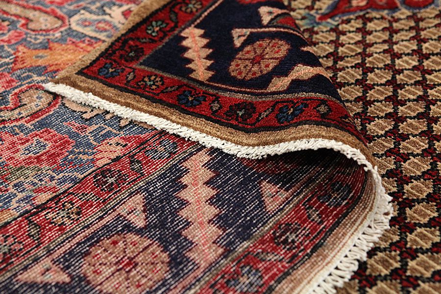Abrash: Auf Grund des unterschiedlichen Wollfettgehalts und der unterschiedlichen Salzmenge während des Färbungsprozesses, hat die Wolle eine unterschiedliche Farbaufsaugfähigkeit. Vor dem Weben ist es nicht so sichtbar. Aber beim Weben entstehen Reihen mit unterschiedlichen Farbabstufungen der gleichen Farbe. Dies heißt Abrash und verdeutlicht die Natürlichkeit und die Originalität der Wolle, die mit keinen chemischen Mitteln behandelt wurde. Beispiele