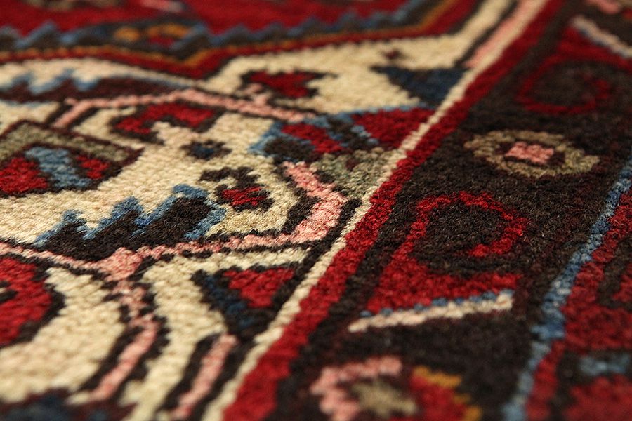 Abrash: Auf Grund des unterschiedlichen Wollfettgehalts und der unterschiedlichen Salzmenge während des Färbungsprozesses, hat die Wolle eine unterschiedliche Farbaufsaugfähigkeit. Vor dem Weben ist es nicht so sichtbar. Aber beim Weben entstehen Reihen mit unterschiedlichen Farbabstufungen der gleichen Farbe. Dies heißt Abrash und verdeutlicht die Natürlichkeit und die Originalität der Wolle, die mit keinen chemischen Mitteln behandelt wurde. Beispiele