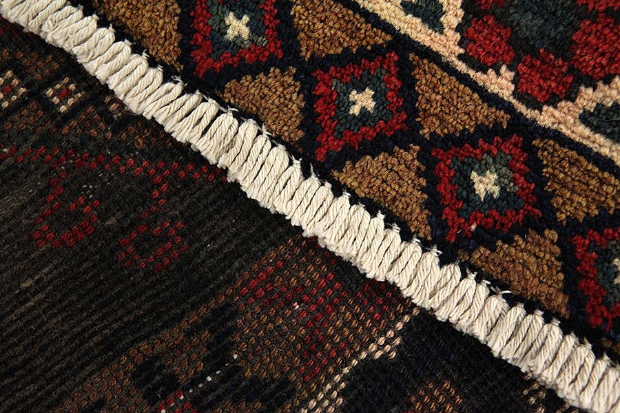 Abrash: Auf Grund des unterschiedlichen Wollfettgehalts und der unterschiedlichen Salzmenge während des Färbungsprozesses, hat die Wolle eine unterschiedliche Farbaufsaugfähigkeit. Vor dem Weben ist es nicht so sichtbar. Aber beim Weben entstehen Reihen mit unterschiedlichen Farbabstufungen der gleichen Farbe. Dies heißt Abrash und verdeutlicht die Natürlichkeit und die Originalität der Wolle, die mit keinen chemischen Mitteln behandelt wurde. Beispiele