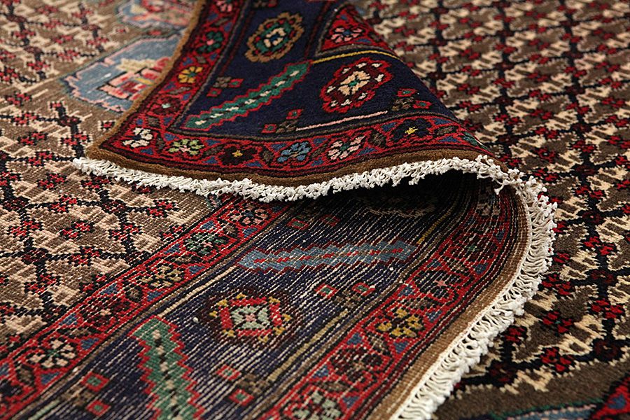 Abrash: Auf Grund des unterschiedlichen Wollfettgehalts und der unterschiedlichen Salzmenge während des Färbungsprozesses, hat die Wolle eine unterschiedliche Farbaufsaugfähigkeit. Vor dem Weben ist es nicht so sichtbar. Aber beim Weben entstehen Reihen mit unterschiedlichen Farbabstufungen der gleichen Farbe. Dies heißt Abrash und verdeutlicht die Natürlichkeit und die Originalität der Wolle, die mit keinen chemischen Mitteln behandelt wurde. Beispiele
