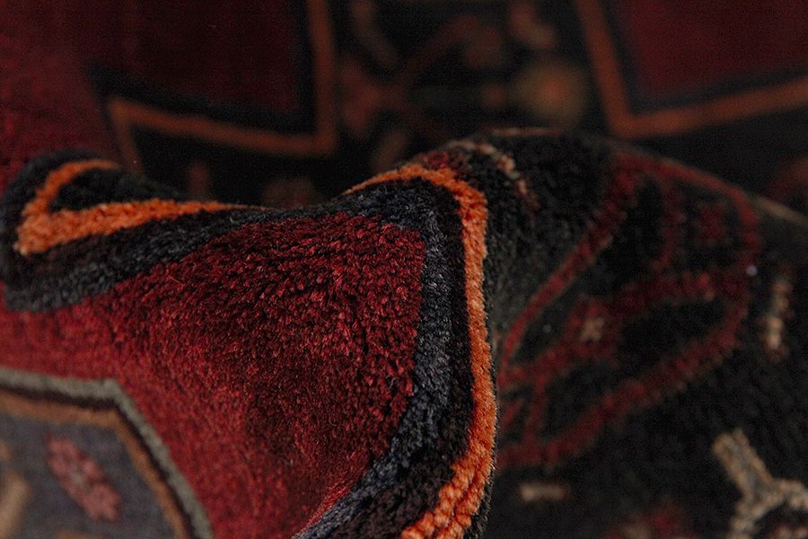 Abrash: Auf Grund des unterschiedlichen Wollfettgehalts und der unterschiedlichen Salzmenge während des Färbungsprozesses, hat die Wolle eine unterschiedliche Farbaufsaugfähigkeit. Vor dem Weben ist es nicht so sichtbar. Aber beim Weben entstehen Reihen mit unterschiedlichen Farbabstufungen der gleichen Farbe. Dies heißt Abrash und verdeutlicht die Natürlichkeit und die Originalität der Wolle, die mit keinen chemischen Mitteln behandelt wurde. Beispiele
