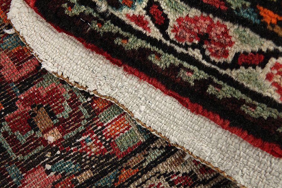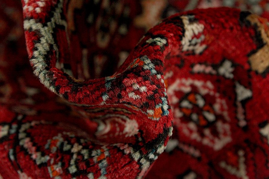 Abrash: Auf Grund des unterschiedlichen Wollfettgehalts und der unterschiedlichen Salzmenge während des Färbungsprozesses, hat die Wolle eine unterschiedliche Farbaufsaugfähigkeit. Vor dem Weben ist es nicht so sichtbar. Aber beim Weben entstehen Reihen mit unterschiedlichen Farbabstufungen der gleichen Farbe. Dies heißt Abrash und verdeutlicht die Natürlichkeit und die Originalität der Wolle, die mit keinen chemischen Mitteln behandelt wurde. Beispiele