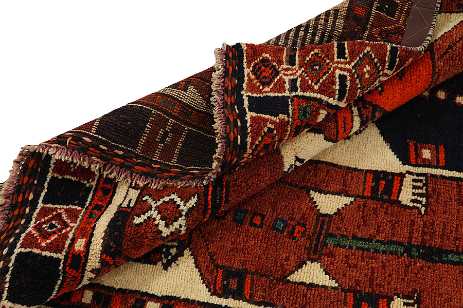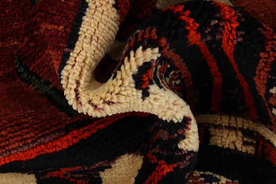 Abrash: Auf Grund des unterschiedlichen Wollfettgehalts und der unterschiedlichen Salzmenge während des Färbungsprozesses, hat die Wolle eine unterschiedliche Farbaufsaugfähigkeit. Vor dem Weben ist es nicht so sichtbar. Aber beim Weben entstehen Reihen mit unterschiedlichen Farbabstufungen der gleichen Farbe. Dies heißt Abrash und verdeutlicht die Natürlichkeit und die Originalität der Wolle, die mit keinen chemischen Mitteln behandelt wurde. Beispiele