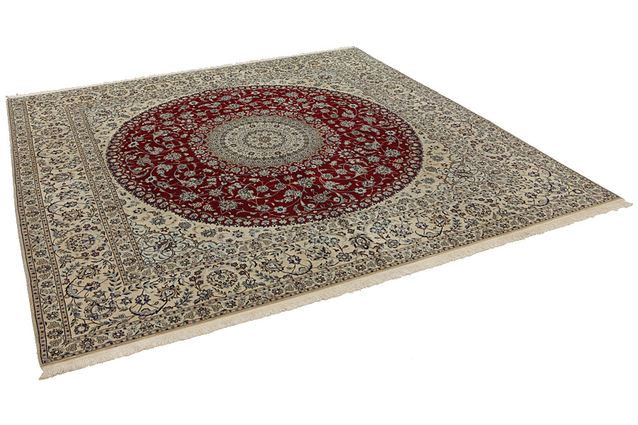 Die Nain Teppiche werden auch in den Gegenden in der Nähe und nicht nur in der Stadt Nain gefertigt. In den meisten Teppichen wird Baumwolle für die Kette verwendet. Die Kette besteht aus einer bestimmten Anzahl an Fäden, die als „La“ bezeichnet werden. Die Nain 6la Teppiche bestehen aus 6 Fäden (6la) und ihr Weben ist sehr dünn. Sie gelten als die elegantesten 6la der Qualität La.