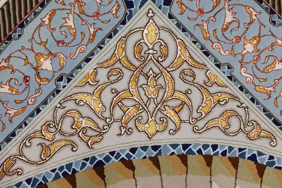 Die Teppichfarben ändern sich je nachdem von welcher Seite er betrachtet wird. Sie können den Teppich auf den folgenden Bildern aus verschiedenen Perspektiven betrachten: