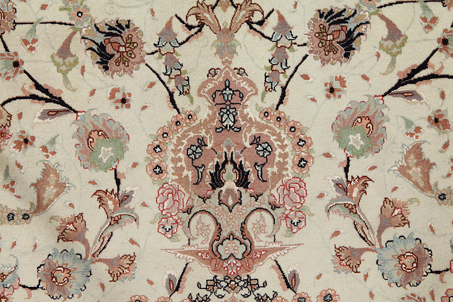 Die Stadt Tabriz ist die Hauptstadt der Provinz Aserbaidschan, im südwestlichen Iran. Bis zum Ende der Karawanen-Zeit war die Stadt das wichtigste Teppichhandels- und Teppichfertigungszentrum. Von hier aus besorgte sich der Westen die Meisterwerke, die bekannte und kompetente Teppichweber fertigten. Die hohe Qualität der Tabriz Teppiche hat sie auf dem Weltmarkt sehr bekannt gemacht. Es wurden viele Werkstätten handgefertigter Teppiche gegründet, in denen alte und neue Muster mit einer sehr hohen Knotendichte und von hochwertigen Materialien gefertigt wurden. Die Seide und die feine Qualitätswolle macht sie zu erstklassigen Teppichen. Keine andere Stadt in Persien fertigte so viele und vielfältige Teppiche.