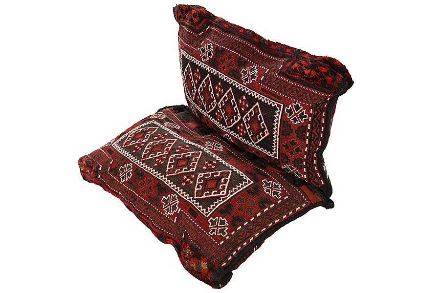 Diese Persischen handgeknüpften Satteltaschen werden von den Nomaden für den Eigengebrauch verwendet. Unterscheiden kann man zwischen Kelim-Satteltaschen und geknüpften Satteltaschen. Bei geknüpften Satteltaschen ist die Vorderseite entweder wie ein üblicher Teppich geknüpft oder oder man findet Mischtechniken. Die Seiten werden oft in Knüpftechnik hergestellt, der mittlere Teil in verschiedenen Webtechniken wie zB. Kelim oder Soumak. Die Farben, die für die Satteltaschen verwendet werden, sind Naturfarben und werden von den Nomaden selbst hergestellt. In diesen Satteltaschen wurden einst Güter des täglichen Bedarfs für Reisende auf Esel oder Pferderücken aufbewahrt. Ein entzückendes Kunstwerk, das Ihrem Zuhause eine einzigartige orientalische Atmosphäre bietet. Satteltaschen können mit Kissen gefüllt werden und als Sitzkissen, als Bodenkissen zB. vor Ihrem Kamin oder als Wanddekoration verwendet werden. Kleinere Satteltaschen können über einen Stuhl ode ein Sofa geworfen werden und als Zeitungsständer verwendet werden.