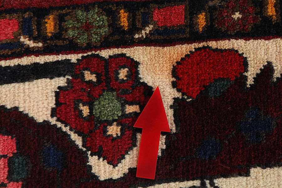 Die Farbe des Teppichs ist an einer kleinen Stelle des Flors verbleicht.