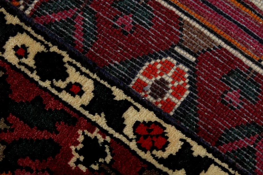 Abrash: Auf Grund des unterschiedlichen Wollfettgehalts und der unterschiedlichen Salzmenge während des Färbungsprozesses, hat die Wolle eine unterschiedliche Farbaufsaugfähigkeit. Vor dem Weben ist es nicht so sichtbar. Aber beim Weben entstehen Reihen mit unterschiedlichen Farbabstufungen der gleichen Farbe. Dies heißt Abrash und verdeutlicht die Natürlichkeit und die Originalität der Wolle, die mit keinen chemischen Mitteln behandelt wurde. Beispiele