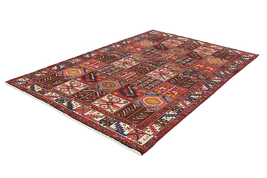 In den Bergen Zagros, westlich der Stadt Isfahan, um die Stadt Shahr-e-Kurd, leben die Nomaden Bakhtiar. Ihre Teppiche sind für ihr Muster mit den verschiedenen wiederkehrenden Quadraten, in denen Blumen oder Tiere abgebildet sind, bekannt. Aus diesem Grund wird dieses Muster als „Garten“ (Khesti) bezeichnet. Ihre Teppiche sind äußerst robust, dicht gewebt und sind aus hochwertiger persischer Wolle gefertigt. Die Wolle stammt von Schafen, die auf Hochebenen grasen. Die besten Bakhtiar Teppiche, die über die höchste Knotendichte verfügen, werden oft als Bibibaf-Teppiche bezeichnet. Außerdem sind auf vielen Mustern Einflüsse aus Isfahan-Teppichen zu sehen (Boldaji, Ferdan, Saman).