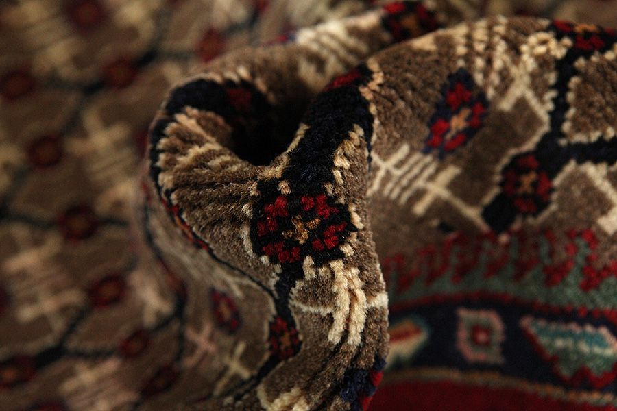 Abrash: Auf Grund des unterschiedlichen Wollfettgehalts und der unterschiedlichen Salzmenge während des Färbungsprozesses, hat die Wolle eine unterschiedliche Farbaufsaugfähigkeit. Vor dem Weben ist es nicht so sichtbar. Aber beim Weben entstehen Reihen mit unterschiedlichen Farbabstufungen der gleichen Farbe. Dies heißt Abrash und verdeutlicht die Natürlichkeit und die Originalität der Wolle, die mit keinen chemischen Mitteln behandelt wurde. Beispiele